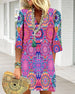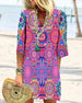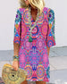 SPECYFIKACJA: Styl: Nieformalny Materiał: 97% Poliester, 3% Spandex Rodzaj Sukienki: Trapezowa Długość Sukienki: Midi Dekolt: W serek Wzór: Nadruk/Wzór Rodzaj rękawa: Rękaw standardowy Długość rękawa: Rękaw 3/4 Detale: Sznurowane, Marszczona Typ sylwetki: Regularny Pora roku: Wiosna, Lato Okazja: Na co dzień Paczka zawiera: 1 x Sukienka TA...