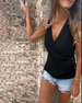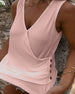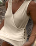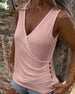 Plisowany solidny swobodny top bez rękawów