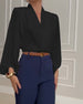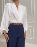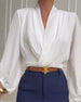 Modna bluzka w jednolitym kolorze z dekoltem w serek i rękawami typu latarnia