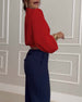 Górny Podkowa Rękaw V Dekolt Kolor Kontrastowy
