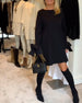 Elegancka sukienka w jednolitym kolorze z okrągłym dekoltem i kieszenią