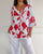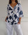 Bluzka V-dekolt Z Zapięciem Na Guziki Wzorzysta