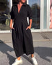 SPECYFIKACJA: Styl: Nieformalny Materiał: 80% Poliester, 20% Bawełna Rodzaj Sukienki: Trapezowa Długość Sukienki: Maxi Dekolt: Dekolt Kopertowy Wzór: Jednolity Kolor Rodzaj rękawa: Rękaw standardowy Długość rękawa: Rękaw 1/2 Detale: Kieszeń Typ sylwetki: Regularny Pora roku: Jesień, Zima Okazja: Na co dzień Paczka zawiera: 1 x Sukienka TAB...