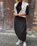 SPECYFIKACJA: Styl: Elegancki, Biznesowy Materiał: Bawełna z domieszką Rodzaj Sukienki: Trapezowa Długość Sukienki: Maxi Dekolt: Okrągły dekolt Wzór: Jednolity Kolor Rodzaj rękawa: Rękaw standardowy Długość rękawa: Długi rękaw Detale: Patchwork, Kieszeń Typ sylwetki: Regularny Pora roku: Wiosna, Jesień, Zima Okazja: Na co dzień, Praca Paczka ...
