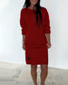Prosta jednokolorowa elegancka sukienka z długim rękawem i kieszeniami