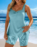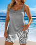 Tankini Dopasowany Bezrękawnik Bokser Z Nadrukiem Dwuczęściowy