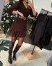 Modna sukienka z długim rękawem i nadrukiem w panterkę